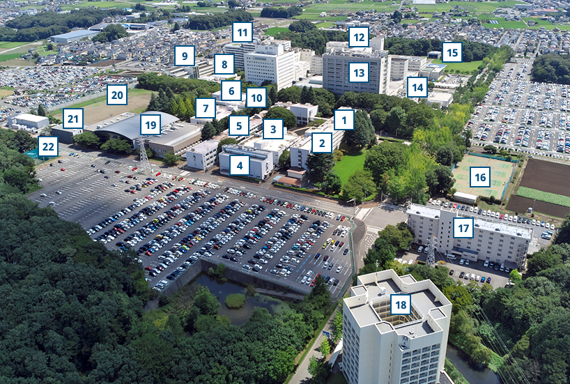 本学のキャンパスは広大です。大学、大学病院、看護専門学校などが機能的に配置され、図書館、運動場などもゆったりと設計されています。また、木々や芝生などの緑も豊かで、充実したキャンパスライフを送るには最適の環境と言えるでしょう。