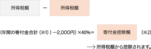 所得控除を行った後に税率を掛け所得税額を算出します。所得金額に比して寄付金額が大きい場合には、税額控除より減税効果が大きくなります。