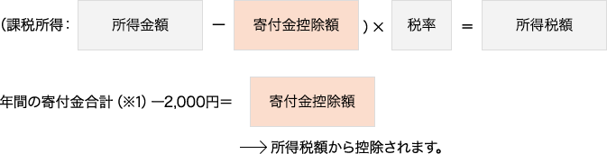 個人からのご寄付につきましては、確定申告を行うことにより、所得税及び個人住民税(自治体が条例で指定した場合に限る)の寄付金控除を受けることができます。