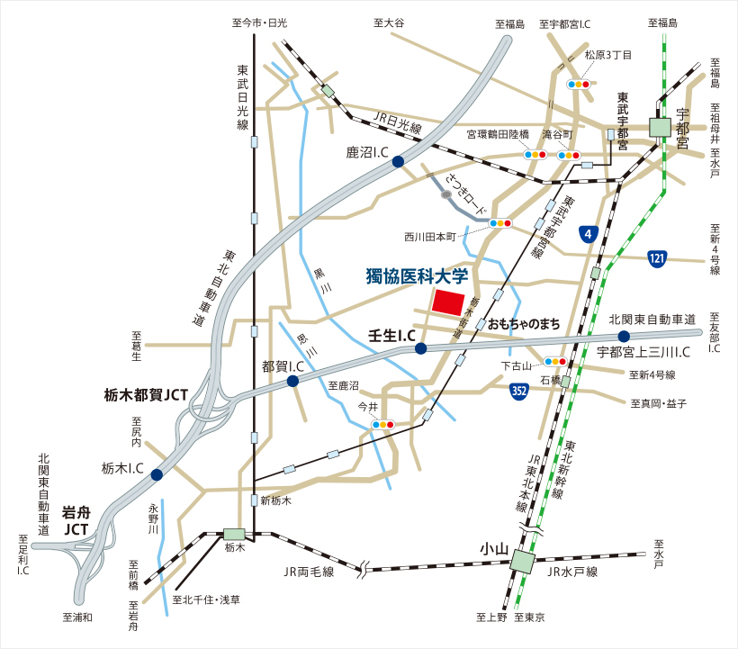 JR宇都宮線「宇都宮駅」下車 市内バスにて「東武宇都宮駅」まで10分
